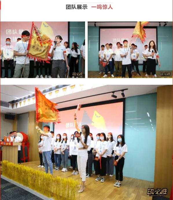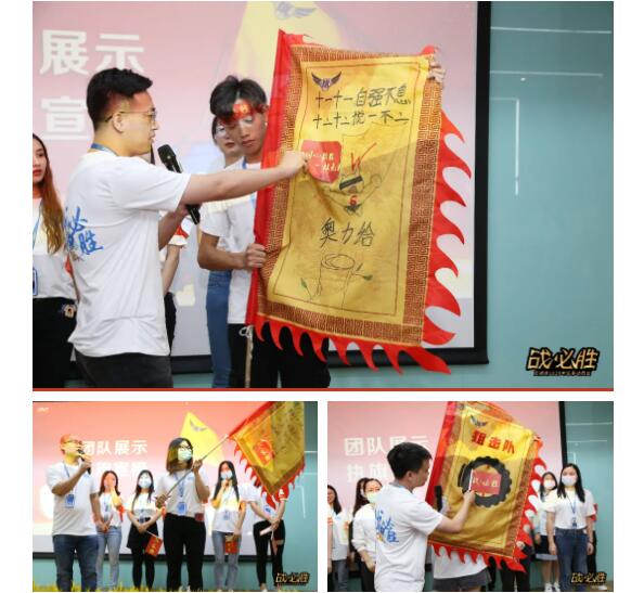 各部门将士昂首挺胸,高举战旗,依次上台进行风采展示。口号声虽风格各异,呐喊声却整齐划一。