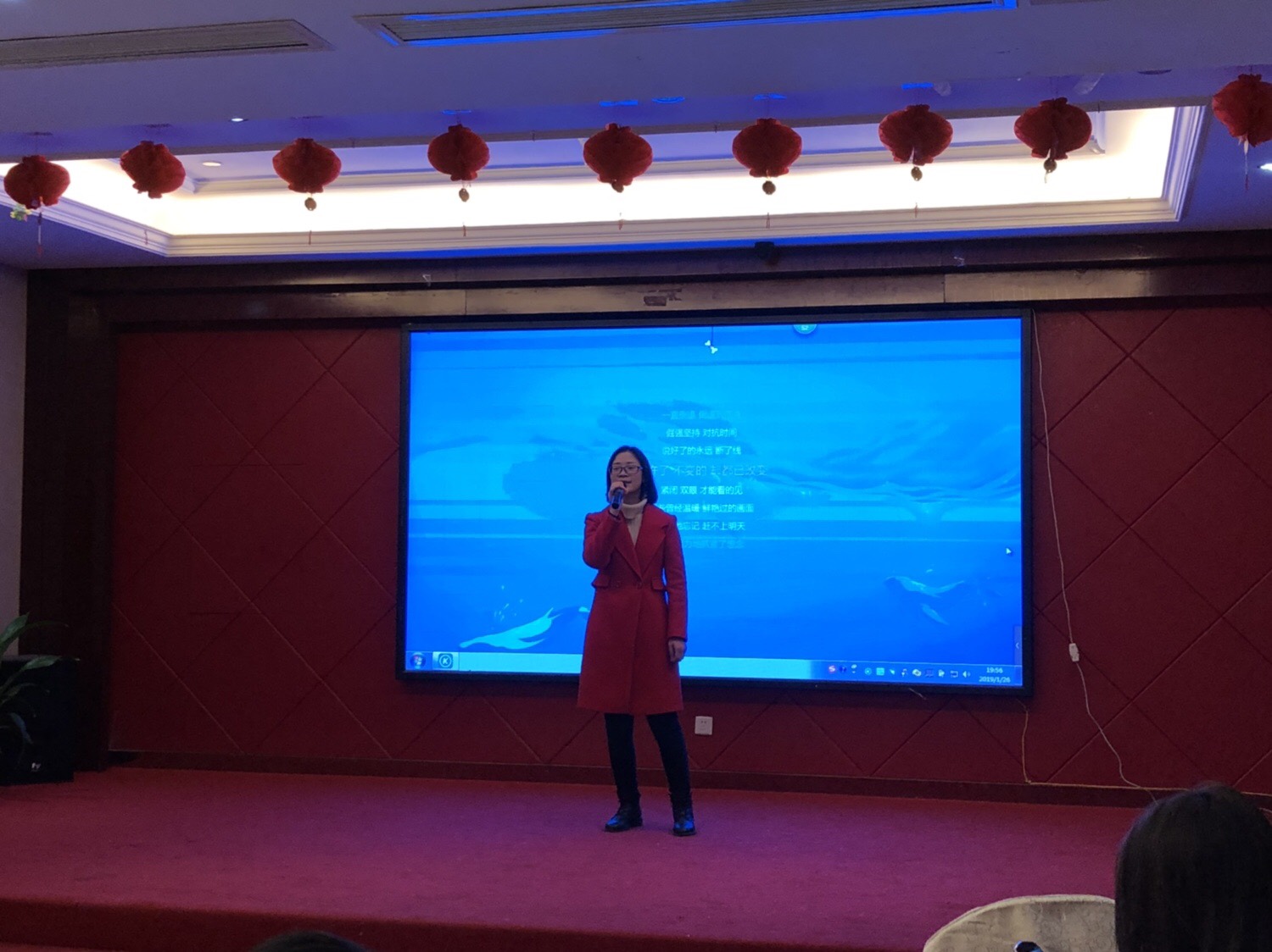伴随着悠扬的小提琴,喜气洋洋的嘉宾们从鲜红的地毯走向我们华丽的年会会场