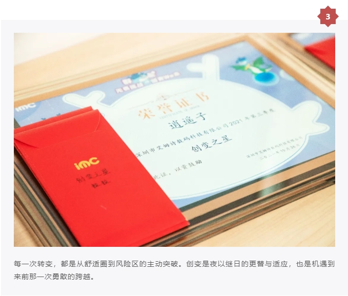 成长路上,他们主动破开茧壳,不断迎来一次又一次的蜕变与突破,成为了IMC创变路上的闪亮明星!